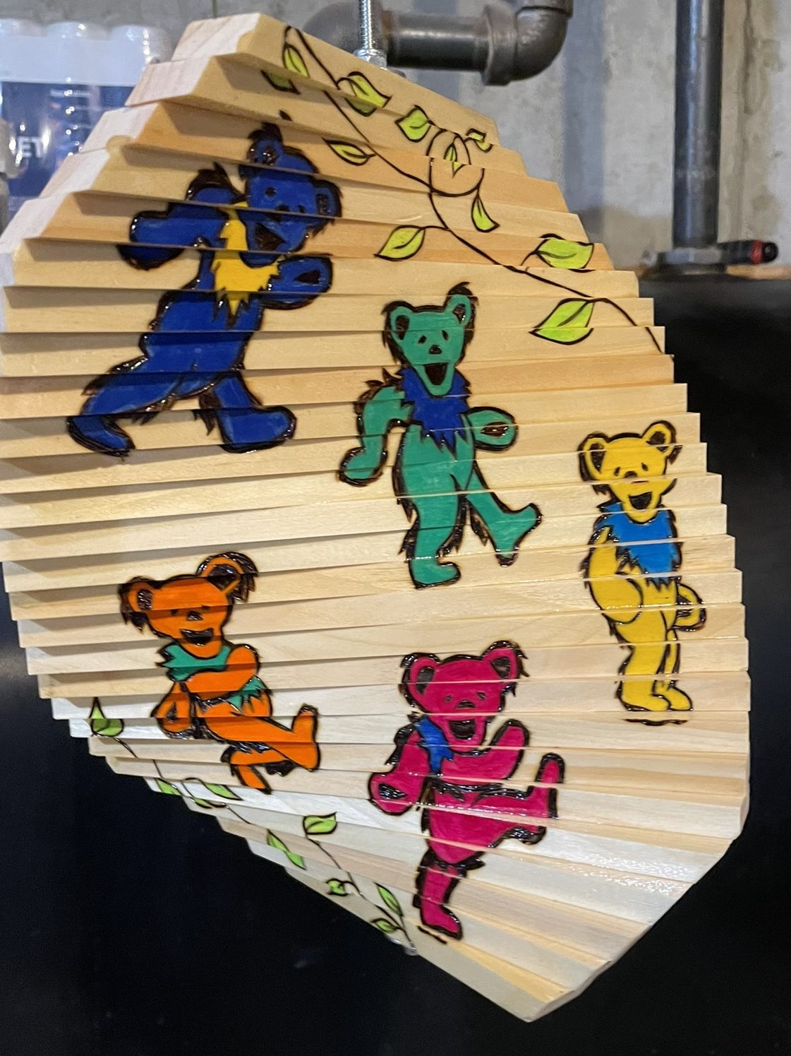 Wind spinners are hand burned outdoor decor that has been finished with outdoor UV resistant polyurethane. Adding one of these beauties to your yard will sure get the neighbors envious.